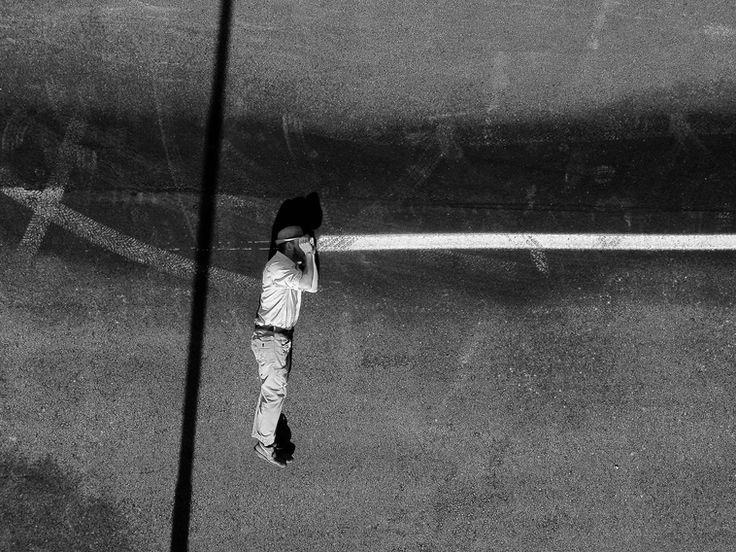 ​"Attraverso l’uso del drone, l’autore sviluppa una fotografia di ricerca che propone una prospettiva inedita: una visione verticale che, osservando il mondo dall’alto, riduce la tridimensionalità a composizioni visive essenziali, quasi astratte. La realtà si trasforma così in un quadro grafico, dove texture, linee e simmetrie diventano protagoniste in un gioco visivo che richiama la pittura minimalista. Le forme, spesso geometriche e immaginate, si alternano a ombre nette, dando vita a una narrazione simbolica. Il drone, annullando la profondità classica della prospettiva, trasfigura l’ordinario in immagine artistica. Al centro di ogni scatto, la figura umana emerge come elemento cardine, fulcro stesso della composizione nella sua presenza silenziosa e simbolica. Il contrasto tra la rigorosa organizzazione dell’immagine e l’unicità del soggetto umano genera una tensione visiva intensa, dove la figura – quasi evanescente e universale – interpreta lo spazio con poesia e forza espressiva.".
