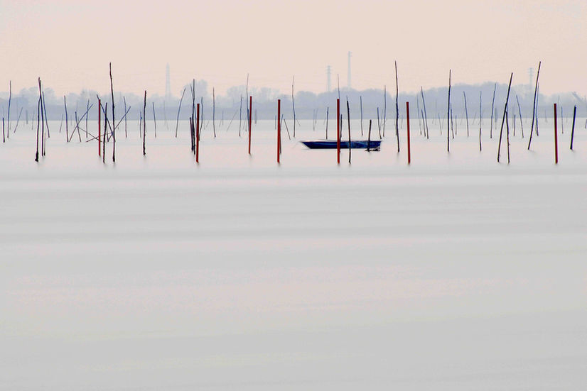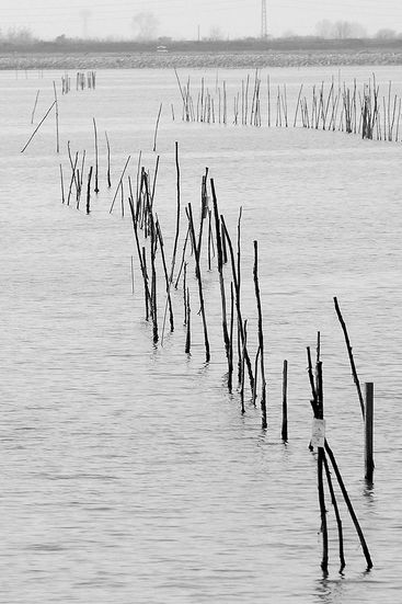 E’ luogo nel quale le trasformazioni seguono il ritmo della luna e delle maree lente, dove l'acqua non ha voce e fluisce per canali bassi impregnando la terra senza rumore alcuno, territorio dove anche la pesca ha tempi rallentati e le rare barche a fondo piatto quasi non sollevano onda. Qui anche la decadenza delle cose assume contorni vaghi e trasfigura gli arnesi dell'attivitá umana in segni e riflessi che, sfuggiti alla banale realtá percettiva, si trasformano in presenze oniriche, reminiscenze vaghe di differenti oggetti e astrazioni che l'immagine fotografica isola nella loro precisa essenza. I colori tenui della luce riflessa e le trasparenze della foschia mattutina sorprendono l'occhio che scorre distratto sul panorama, conducendolo verso lo straniamento onirico.